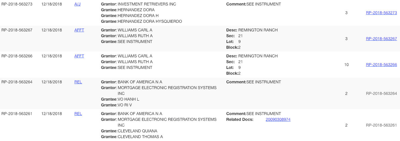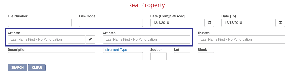 Searching by Grantor, Grantee, and Lot and Block numbers allows you to look up properties even if you’re unsure whether they have been involved in any recent transactions. These parameters can be used to conduct more general research on properties, owners, and geographic areas.