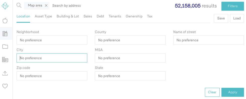 Further physical qualifications that you can add to your search are located in the Building and Lot tab. Available filters include building and lot size, whether the property is in an Opportunity Zone, the year the building was constructed, and more.