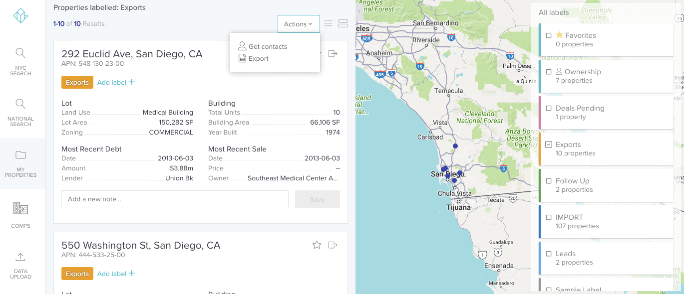 Perform any of the searches above to generate lists of target properties. Effective property lists are highly targeted and relevant to your acquisition targets. With Reonomy, you can create an effective lead list of properties in three easy steps: