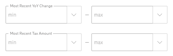 You can also narrow down your search to properties with specific tax characteristics. That includes filters for “most recent year-over-year tax change,” and “most recent tax amount.”