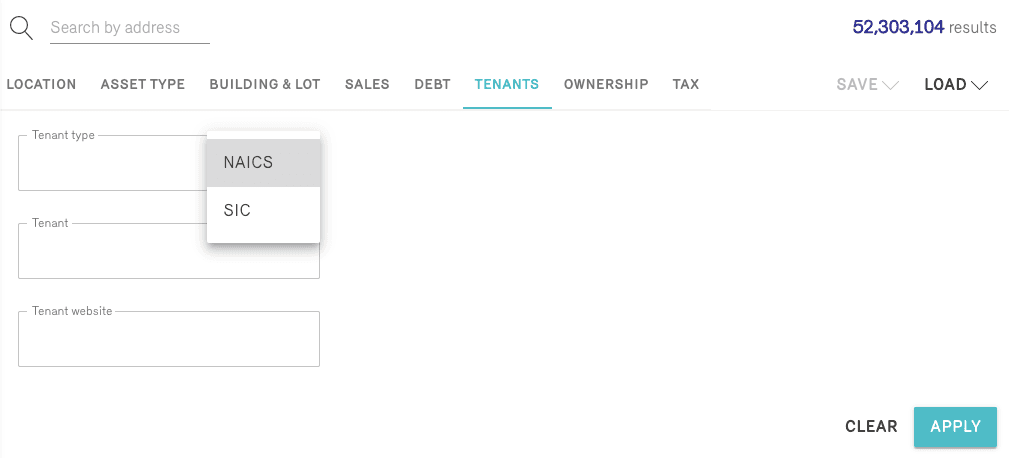 Your search can also be refined by the business tenants within a building. Search for specific NAICS and SIC codes, search by the name of the tenant, or by their web address.
