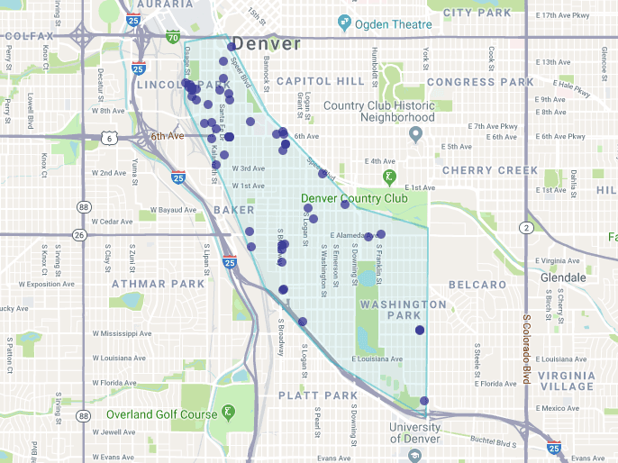 Reonomy offers an easy-to-use map tool that’s integrated with Google Maps for a streamlined user experience. There are multiple ways to generate a search using the map. First is by Zoom & Lateral Movement. As you scroll and zoom in the Reonomy map, it will automatically update with the commercial properties available in that location: You can also search by using the Radius tool to conduct searches. This will automatically create a radius based on the area you click on within the map: