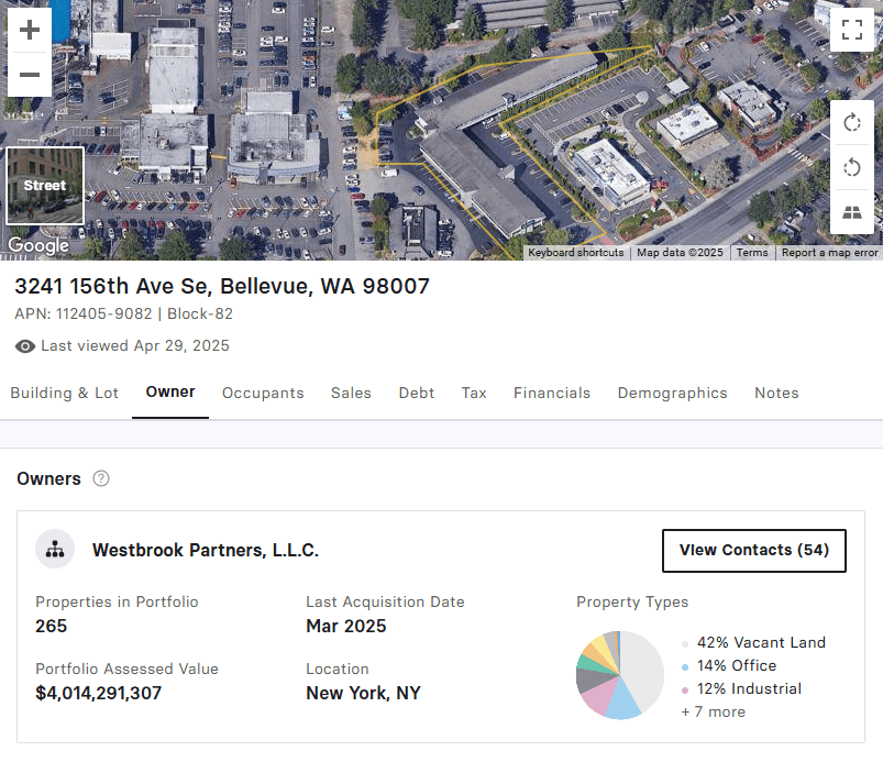 You can run a property owner search on Reonomy using a number of different physical and financial property filters. Reonomy also acts as a comprehensive commercial property owners database, offering extensive details on ownership.