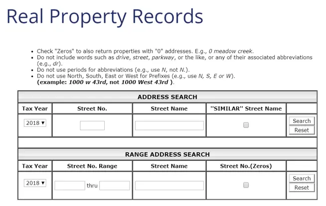 Very few users will have a property’s account number, unless you are the existing property owner. Most owner searches will be conducted by address. This is a good starting point, assuming you have a specific property owner or parcel in mind. If you wanted to search for all properties owned by “John Smith,” for example, it might be difficult to decipher the properties owned by the John Smith you have in mind.