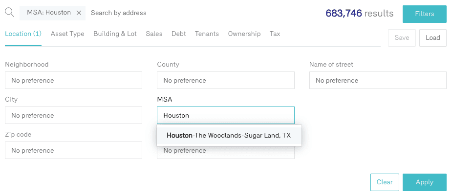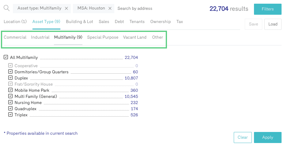 The first step in making any property owner search more relevant is ensuring that the asset they own fits into your focus domain. This includes filtering for both the location and type of asset they own.