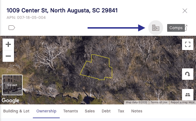 If your firm is looking for multiple acquisitions in a specific market, you can start by identifying a single property of interest, and then view its comparables to find other similar assets. What you might do is look up a property matching your criteria, or even a property already in your portfolio, then simply click Reonomy’s “Comps” button, which will take you to a list of comparable assets.