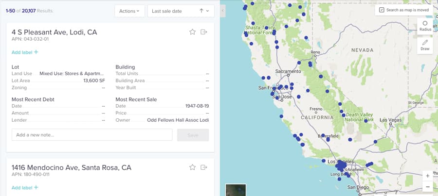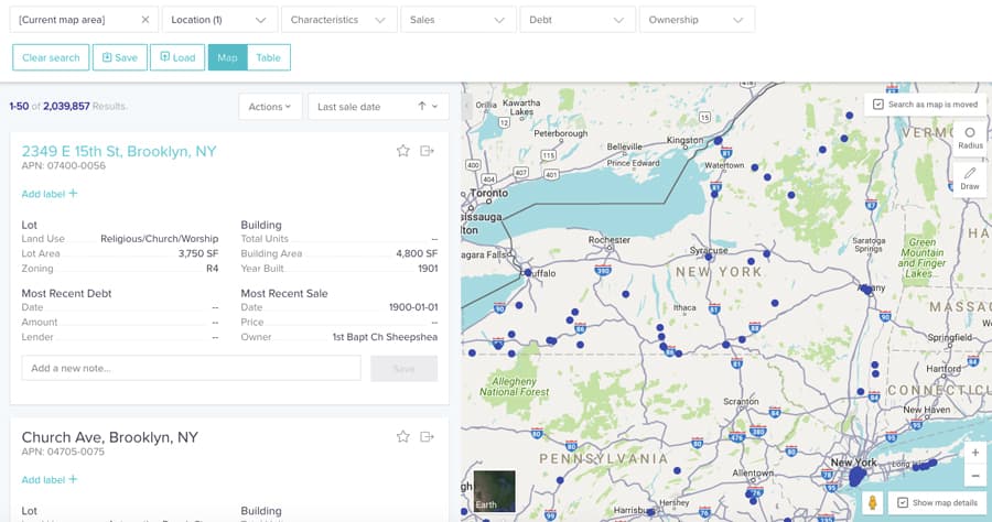 For one, sales records show recent sellers that have cash on-hand and are potentially looking to reinvest in new assets (similar to the one they’ve just sold). Searching recent sellers on Reonomy is one way to build a list of potential real estate buyers. You can also use comps (discussed below) to search for properties that are similar to the one you’re trying to sell. By doing this, you can find owners who have recently purchased similar properties, that may be looking to add more assets to their portfolio.