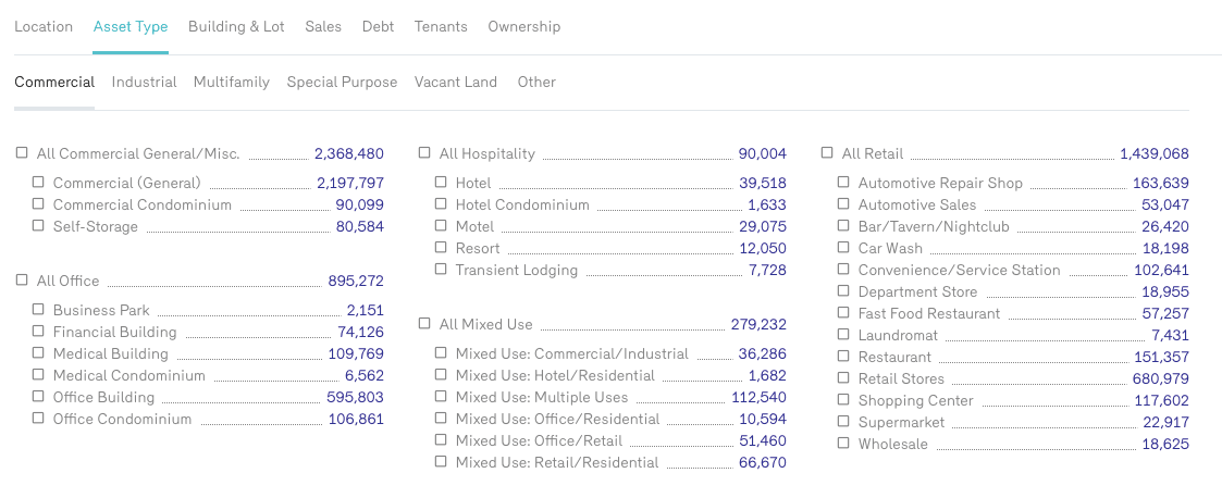 You can use Reonomy to find property records on the entire supply of commercial properties nationwide. All-in-all you can find property records on the following asset classes: