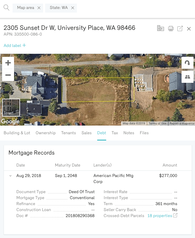 Property mortgage records outline the current and past debt on a commercial asset. On Reonomy, that includes the following information…