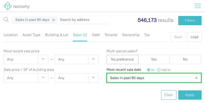 Reonomy harnesses the market’s largest database of off-market properties to make it easy to either funnel that information into your database, or allow you to search quickly and find information in a pinch. To find properties recently sold, simply filter a property search by most recent sale date. This will quickly serve up recently sold commercial properties in any county in the US.